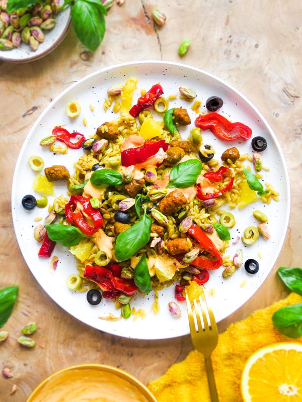 Recept Snelle Orzo Met Tomaat En Vegan Kip Uit De Oven